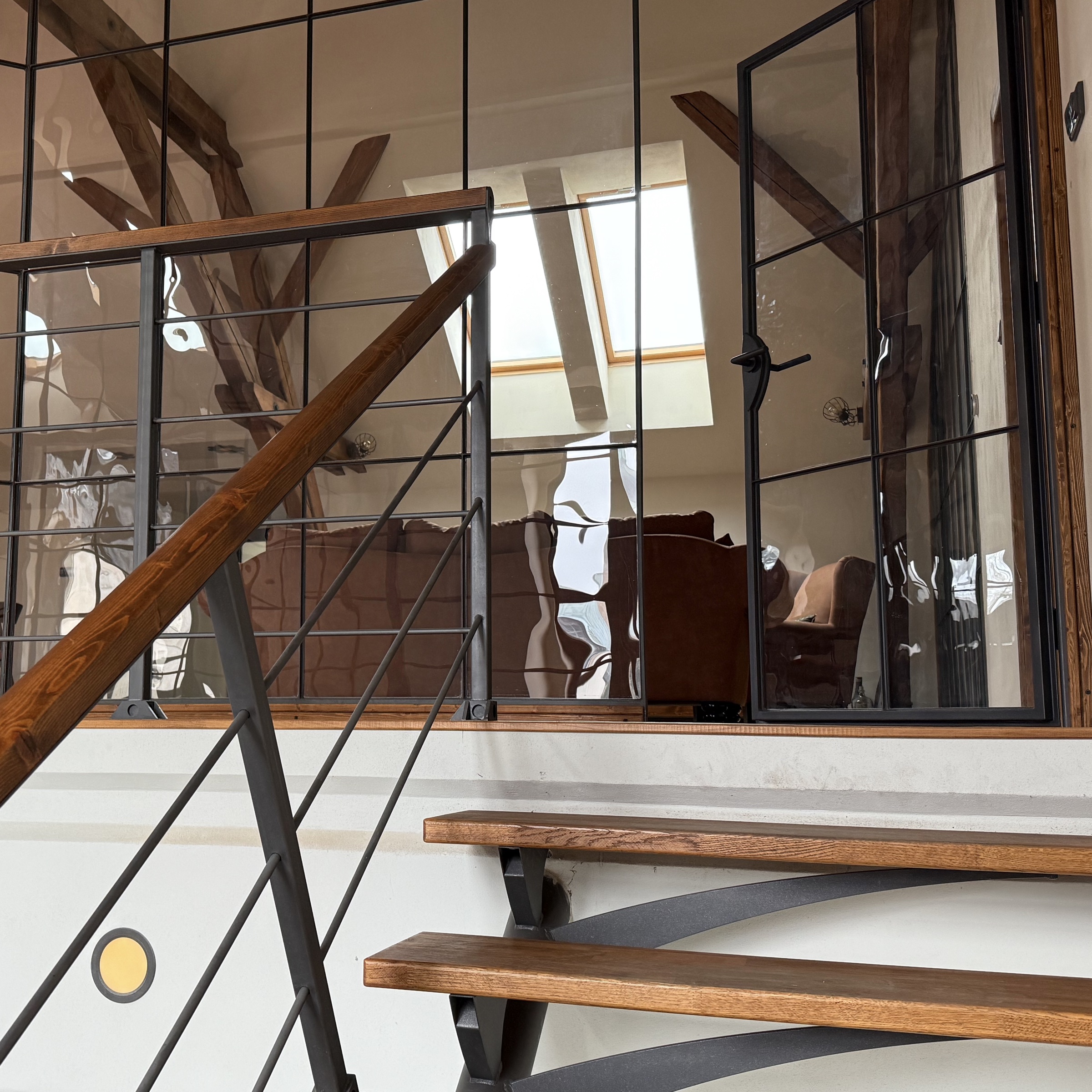Precizní zpracování kovu je základem pro konstrukce prosklených stěn s dveřmi i bez dveří. Svařované profily svým charakterem připomínají stará litinová tovární okna z období průmyslové revoluce. Prosklené stěny tak přinášejí do interiéru jedinečnou atmosféru industriálního designu zasazenou do současného prostoru.