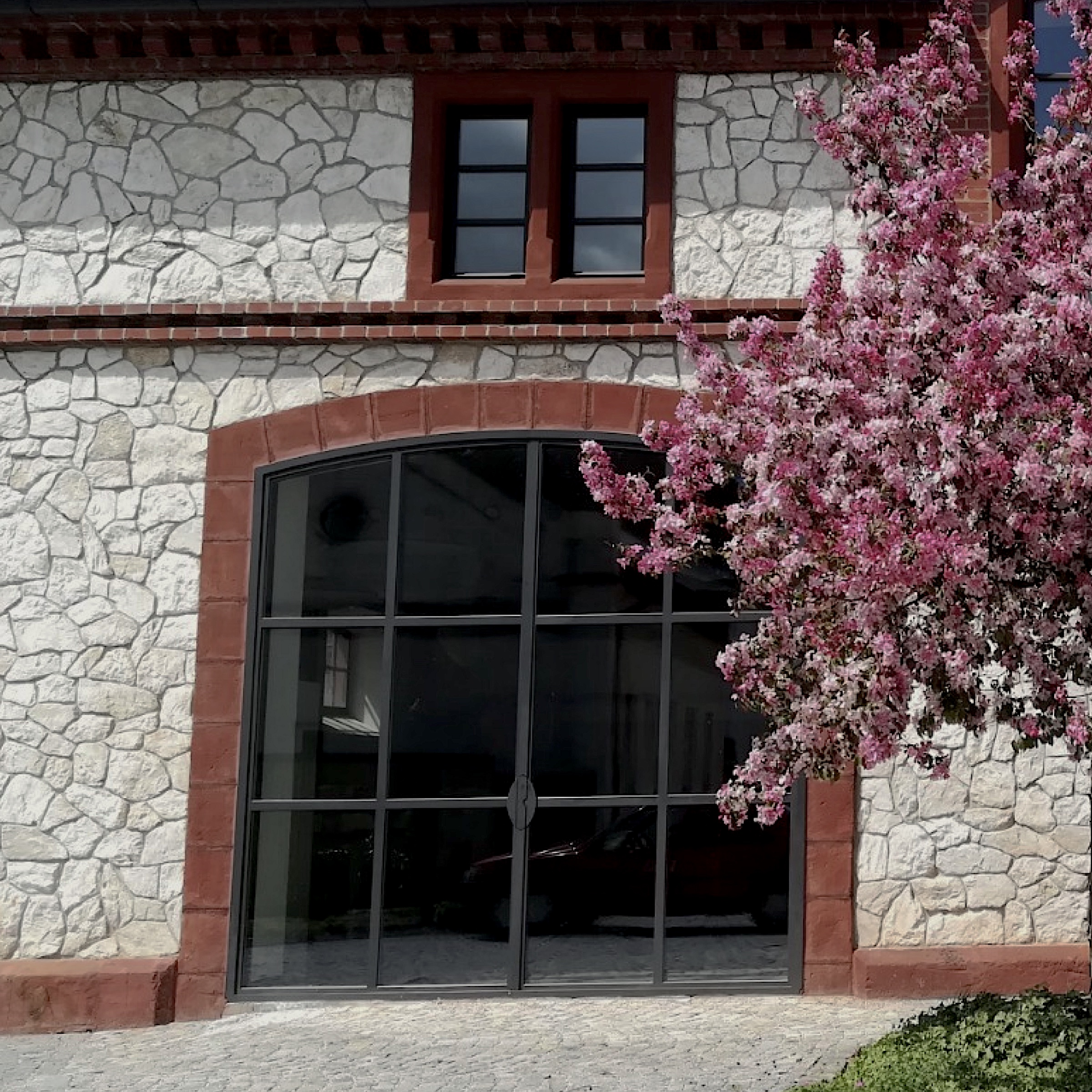 Pro naši historickou budovu z roku 1782 jsme proto navrhli a vyrobili vlastní kovová otevírací prosklená vrata.